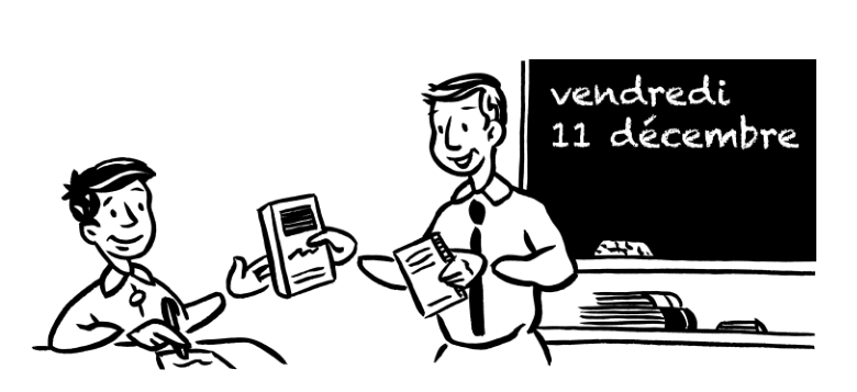 Ensuite il lui demande d’écrire la date au tableau : vendredi onze décembre.
